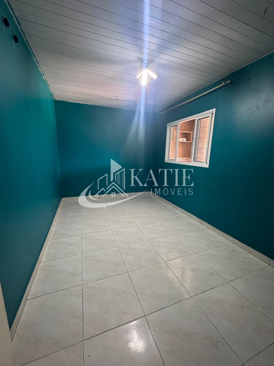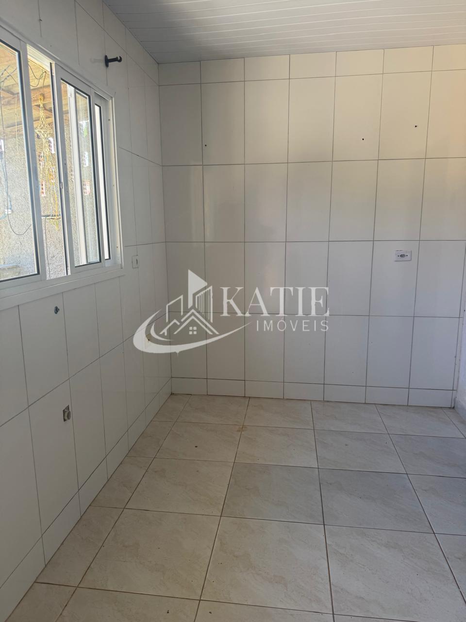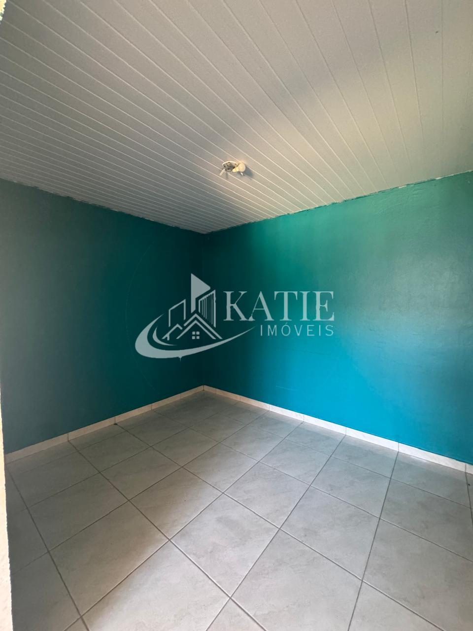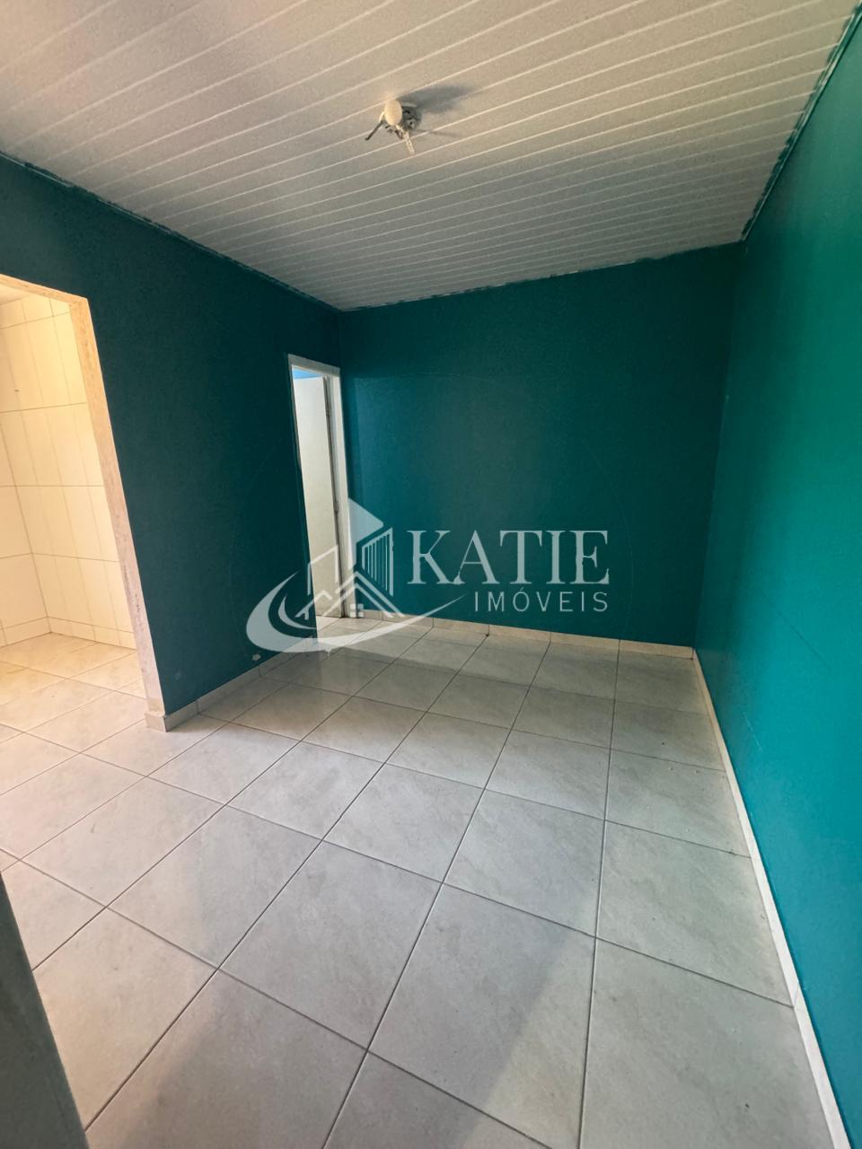 Casa com sala e cozinha conjugadas, 3 quartos, 1 banheiro, espaço para garagem, área externa.